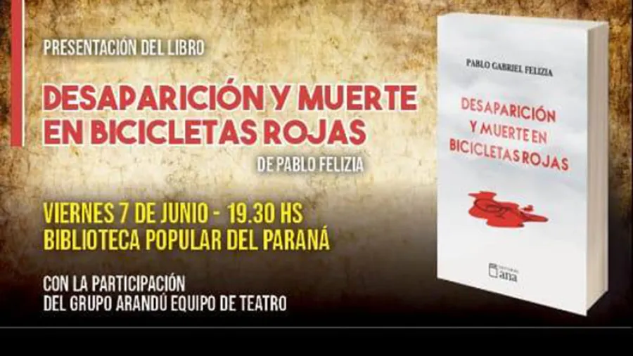 Este viernes a las 19.30, en la Biblioteca Popular del Paraná, Pablo Felizia presentará el libro de cuentos “Desaparición y muerte en bicicletas rojas”, basados en hechos policiales ocurridos en Entre Ríos; y para cuya realización, el autor recibió una beca del Fondo Nacional de las Artes. Asimismo, es importante destacar que el grupo Arandú Espacio de Arte realizará una representación del cuento que le da nombre al libro y estarán en escena Agustina Felizia, Mario Uhrich y Fercher Jesus.