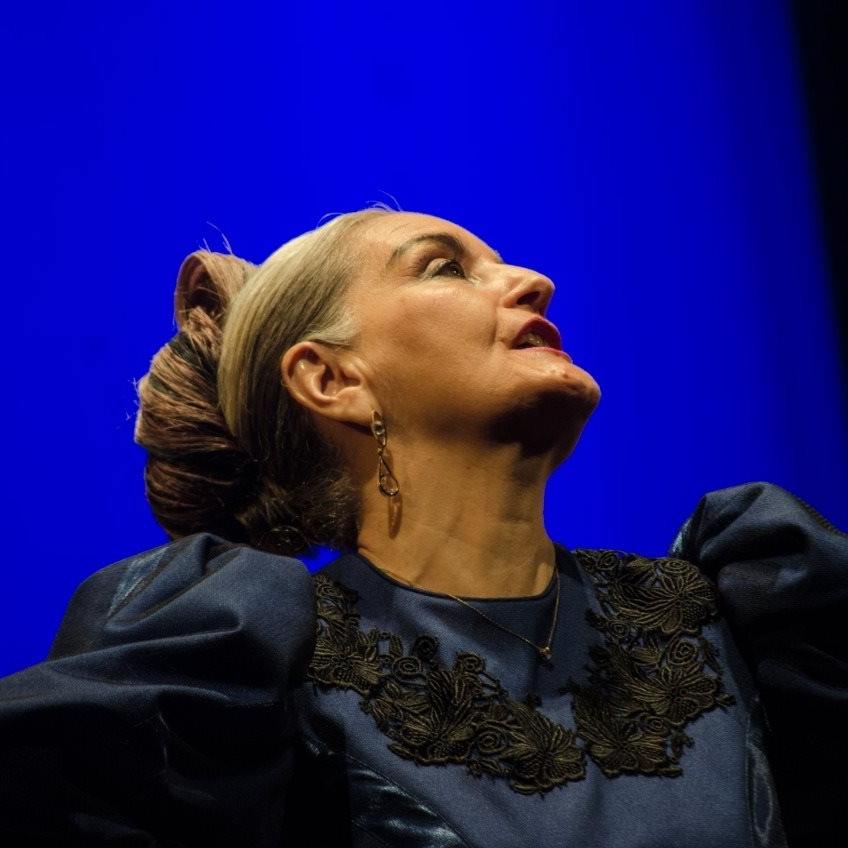 La actriz Inés Ghiggi encarna el rol de Tadea Jordán, en la obra que dirige Mario Martínez. Foto: Raúl Perriere.