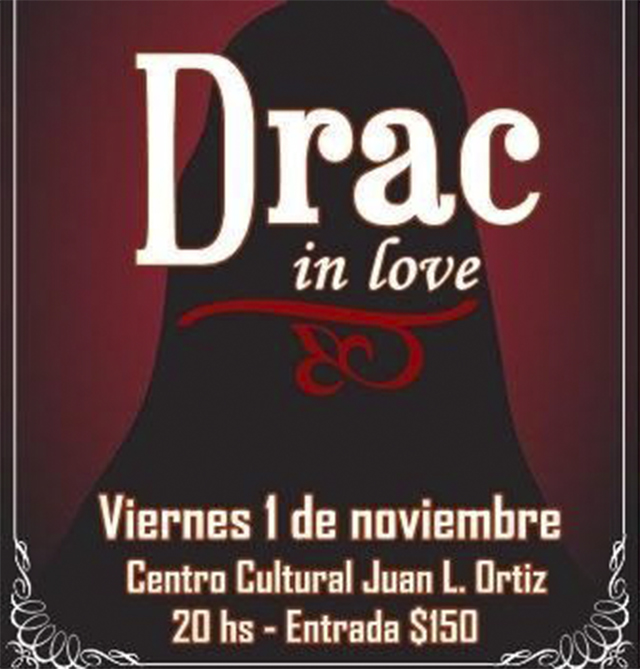 Este viernes en el Centro Cultural Juan L. Ortiz tendrá lugar la puesta en escena de la obra teatral “Drac in Love”, de El Drama Group, de la Cultural Inglesa de Paraná, a cargo de Paula Lacorazza. La cita será a las 20, en el espacio sito en Boulevard Racedo 250, Paraná.