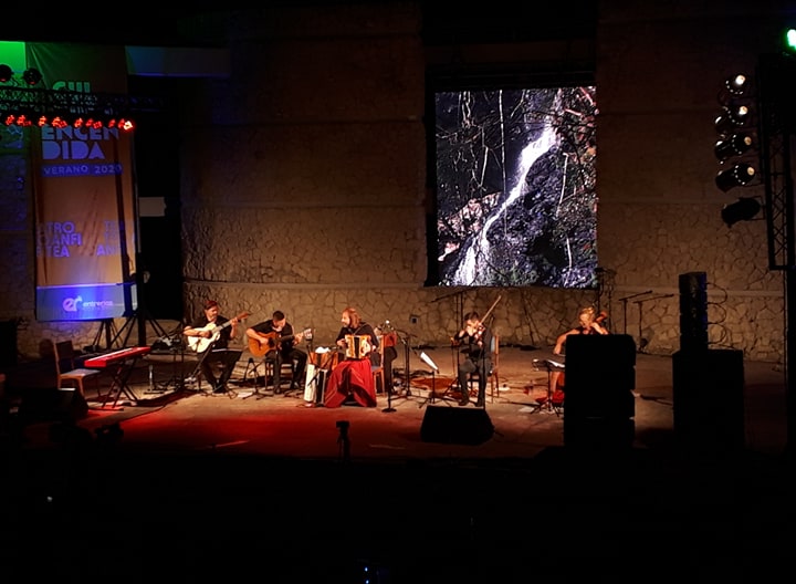 Se trataba de la compañía de Danza Aérea Reverso y Espacio Danza, quienes fusionaron música y movimiento, con una fuerte puesta estética: visuales, juegos de luces, creando diferentes perspectivas, al compás de los cuerpos que danzaban en contemporáneo.