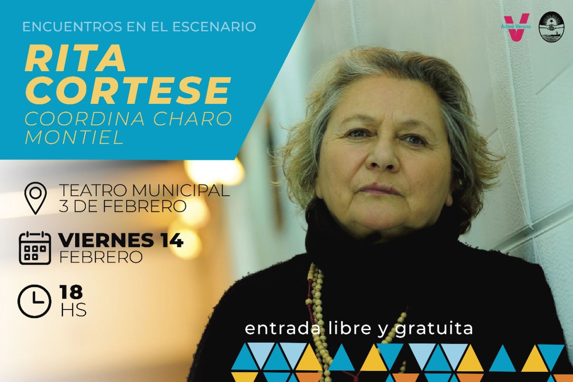 Este viernes en el Teatro Municipal 3 de Febrero de la capital entrerriana, se realizará la apertura del ciclo "Encuentros en el Escenario". La primera experiencia será con Rita Cortese y la artista anfitriona Charo Montiel. La actividad será a partir de las 18, con entrada libre y gratuita.