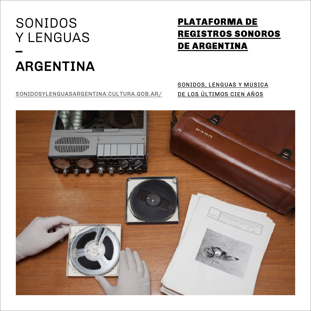 El Ministerio de Cultura de la Nación, a través del área de Coordinación de Investigación Cultural de la Dirección de Gestión Patrimonial, presenta Sonidos y lenguas - Argentina, un proyecto cultural dedicado a la investigación, la experimentación y la preservación de los registros sonoros de nuestro país.