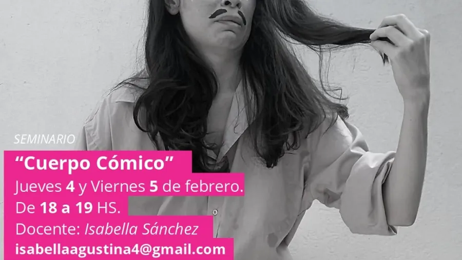 El Seminario Intensivo "Cuerpo Cómico", tendrá lugar los días 4 y 5 de febrero en el Centro Cultural y de Convenciones La Vieja Usina (Gregoria Matorras 861) de 18 a 19 y será facilitado por la artista local Isabella Sánchez.