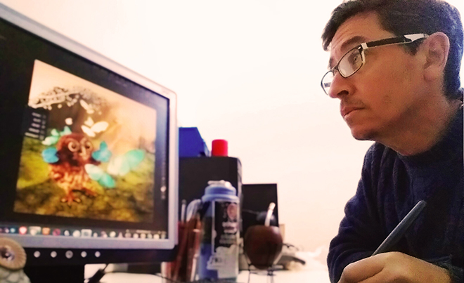 “Me basé en fotografías las cuales son recortadas y montadas para crear la imagen final. Cada animalito tiene como base entre tres y cinco fotos diferentes que son montadas, ecualizadas para lograr el mismo tono y dibujadas encima con diferentes técnicas de ilustración digital. Los fondos fueron elegidos de la misma forma, buscando los entornos naturales entrerrianos y superponiendo las imágenes editadas. Los fondos también son tratados con edición de color y dibujo superpuesto. También busqué imágenes de plantas y árboles para superponer y completar los cuadros”.