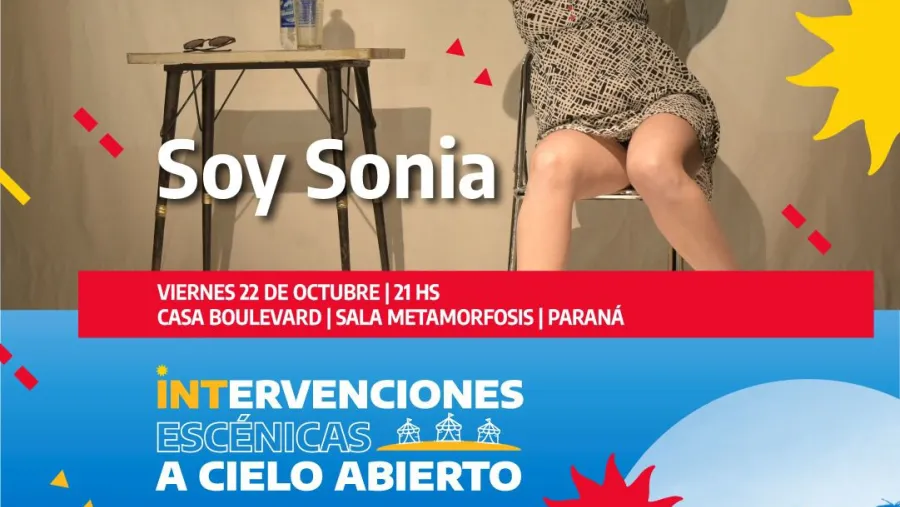 "Soy Sonia" es una producción oriunda de la ciudad de Gualeguay y llega a Paraná de la mano del plan Intervenciones Escénicas a Cielo Abierto, impulsado por el Instituto Nacional del Teatro. Será este viernes a las 21 con entrada libre y gratuita en Ituzaingó 80.