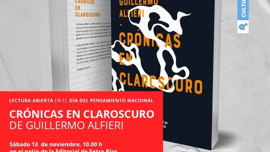 La Editorial de Entre Ríos (EDER) invita al "Día del Pensamiento Nacional. Lectura abierta de Crónicas en Claroscuro de Guillermo Alfieri", uno de los últimos títulos publicados por la Editorial de Entre Ríos.