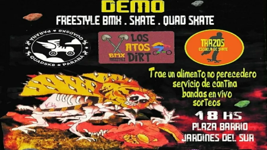 Además de la música, durante la jornada se podrá disfrutar de diferentes demostraciones de deportes callejeros de la mano de Trazos Escuela de Skate, Los Vatos Dirt y QuadSk8 Paraná.