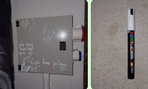El hecho ocurrió alrededor de las 0.45, cuando el móvil 902 se encontraba realizando recorridos de prevención por calle Racedo, entre Belgrano e Yrigoyen. En ese momento, los efectivos advirtieron la presencia de dos varones y una mujer escribiendo con un fibrón sobre el artefacto.