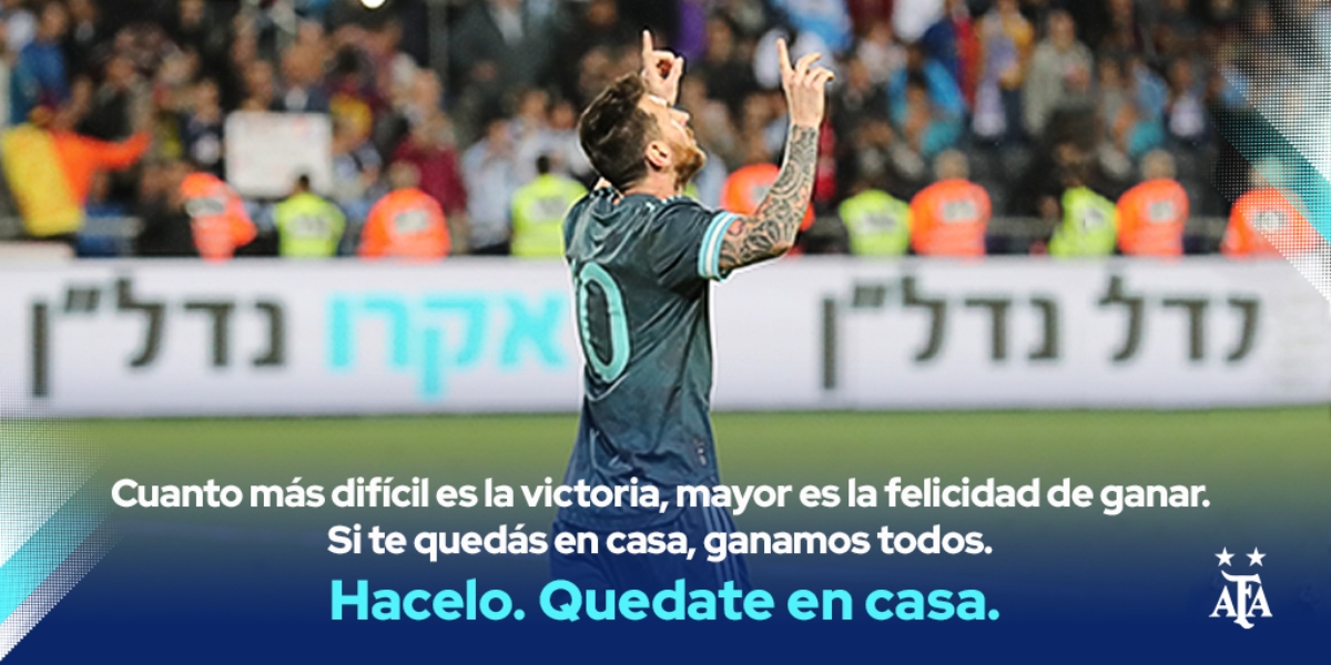 Mientras el día a día habitual se ve interrumpido por completo, la cuenta oficial de la selección Argentina publicó un mensaje para alentar el respeto al aislamiento obligatorio. Esta situación rige en el país desde el 19 de marzo y continuará al menos hasta el 26 de abril.