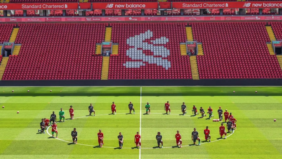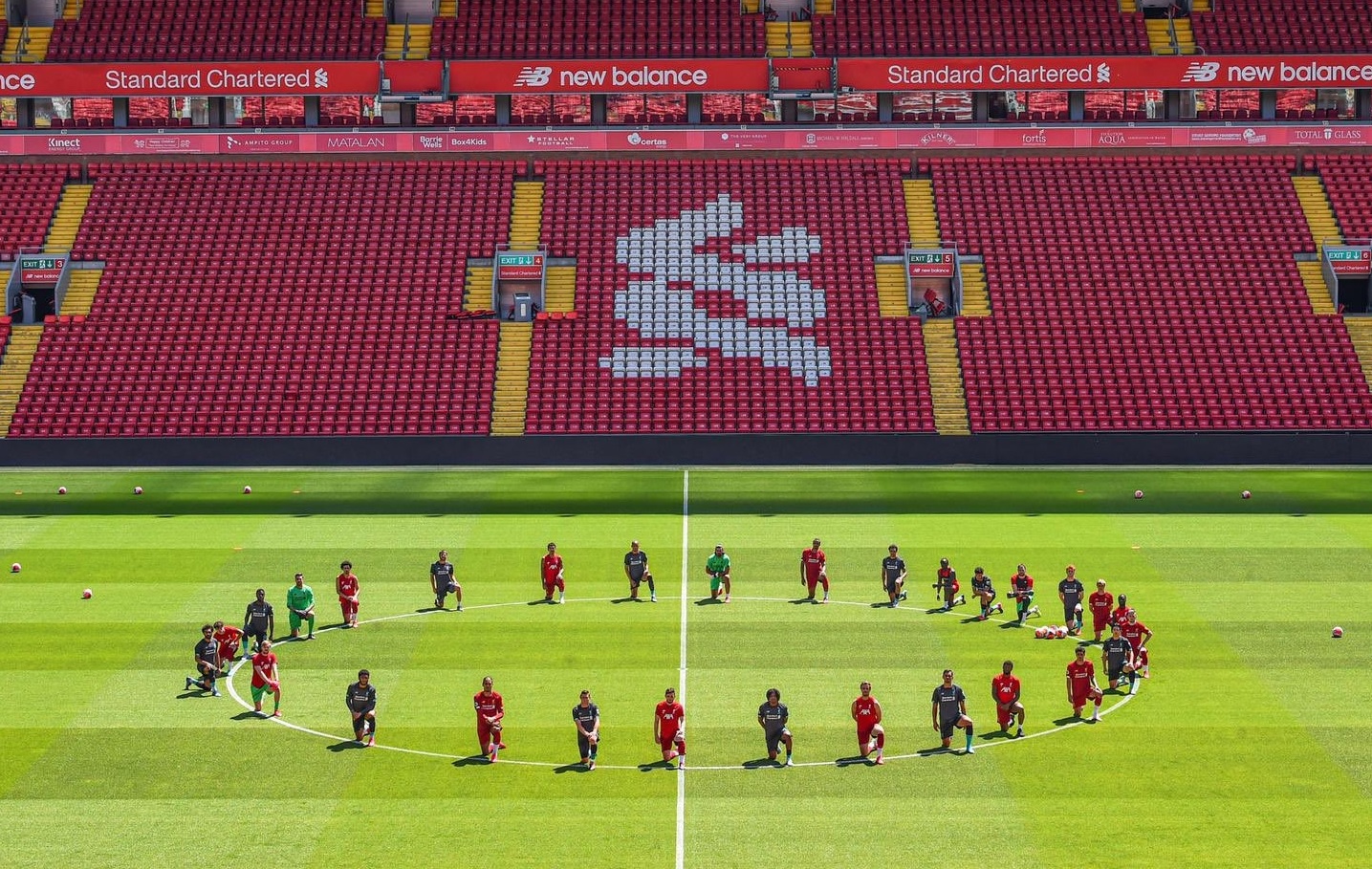 Todos los jugadores del equipo dirigido por Jürgen Klopp se arrodillaron en el círculo central de Anfield para tomarse una foto que luego compartieron en las redes sociales, bajo la consigna: “La unidad es fuerza” y el hashtag #BlackLivesMatter.