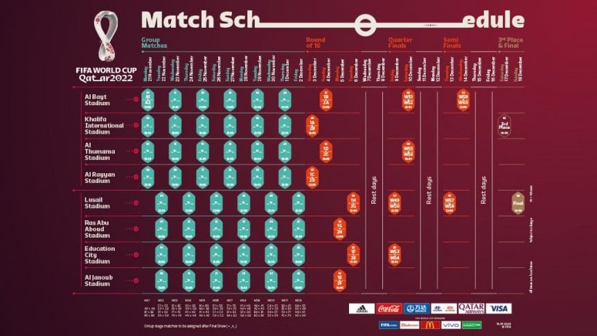 La FIFA publicó este miércoles el calendario del Mundial de Qatar 2022.