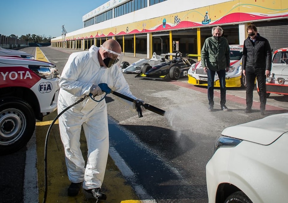 En el autódromo de Buenos Aires se probaron los elementos para prevenir el Covid-19.
