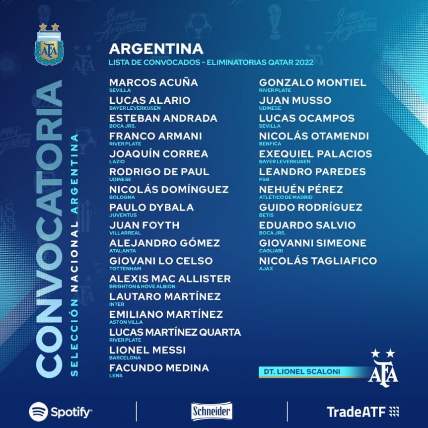 La selección Argentina juega durante la próxima semana sus primeros juegos en el marco de las Eliminatorias Sudamericanas rumbo al Mundial de Qatar 2022. En ese contexto, el entrenador Lionel Scaloni dio a conocer la nómina definitiva de jugadores convocados para afrontar esos partidos.