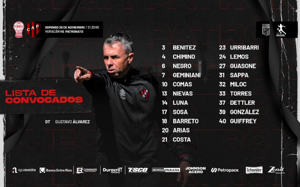 Sin sorpresas, Gustavo Álvarez dio a conocer el listado de 20 futbolistas que viajarán a Buenos Aires para medirse con Huracán. El partido en Parque Patricios se desarrollará este domingo, desde las 21.30. El Patrón presentaría tres variantes respecto al empate con Gimnasia de La Plata.