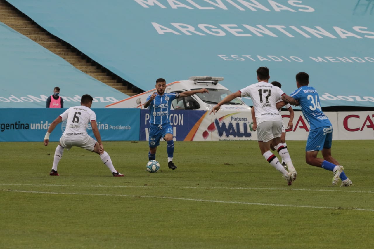 El conjunto mendocino asumió el protagonismo desde el primer minuto y desde los pies y la cabeza de Victorio Ramis estuvo muy cerca de abrir el marcador. Sin embargo, se topó con las grandes intervenciones de Mariano Andújar. El arquero platense redondeó una gran actuación en Mendoza, más allá de que a los 18 del primer tiempo no pudo evitar el cabezazo certero de Tomás Badaloni.