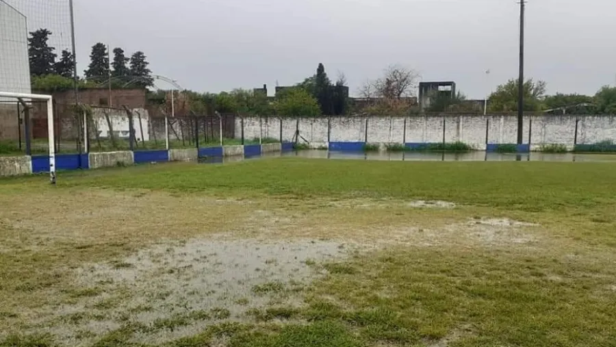 La lluvia afectó el terreno de juego de Sportivo Urquiza. (Foto: Minuto a Minuto).