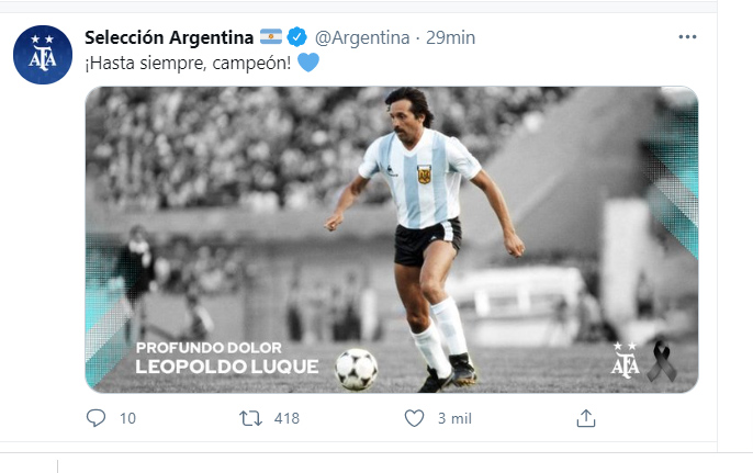 El ex delantero y campeón del Mundo con Argentina en 1978 Leopoldo Jacinto Luque falleció a los 71 años en Mendoza con coronavirus, tras estar más de un mes internado en la clínica de Cuyo, cuyas autoridades confirmaron el deceso del ex futbolista de River Plate y Unión de Santa Fe.