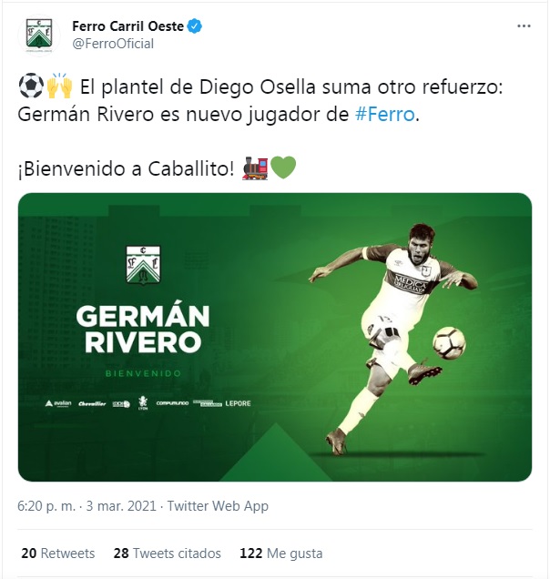 Por su parte Germán Rivero también rescindió su contrato con Patronato en las últimas horas y se transformó en jugador de Ferro Carril Oeste, elenco que dirigirá en la Primera Nacional un ex DT de Patronato, Diego Osella. Allí Rivero se reencontrará con otro ex Patronato, como el caso del arquero cordobés Federico Costa.