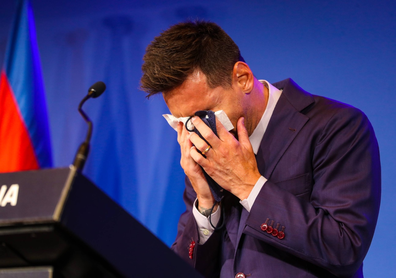 El delantero argentino llegó al Auditorio 1899 del Camp Nou entre lágrimas, con la obligación de dar sus sensaciones respecto a la salida del club. Esto comenzó tras el anuncio de la propia institución a través de sus redes sociales de que Messi no continuaría en la institución por obstáculos económicos y estructurales relacionados con la normativa de La Liga española.