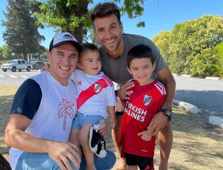 Werner y sus hijos posaron con Ponzio, quien este sábado se despedirá del fútbol profesional como jugador.