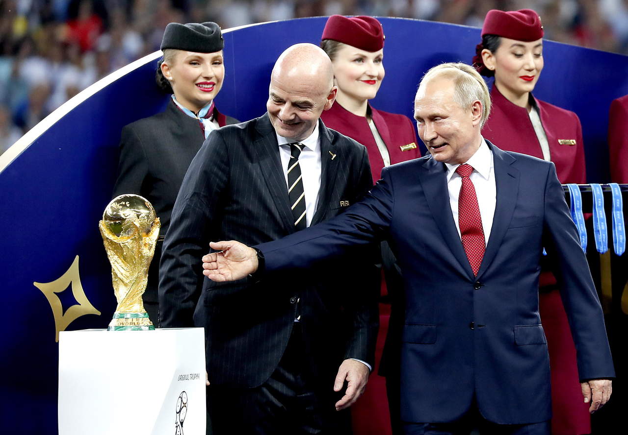 El titular de la FIFA, Gianni Infantino, junto al presidente de Rusia, Vladimir Putin, anfitrión de la última Copa del Mundo masculina.