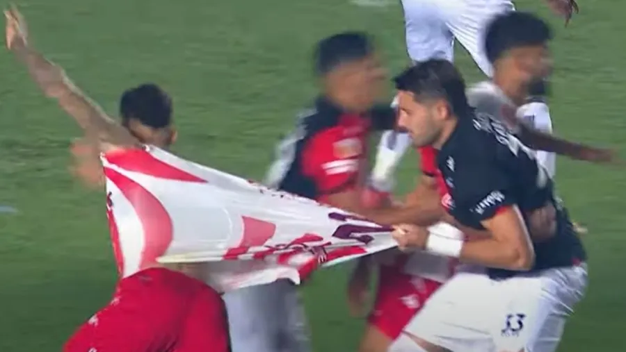 La polémica fue tras un tiro libre en favor del Tatengue. El balón fue dirigido hacia el área mientras Garcés cometía una clarísima falta sobre Calderón con Pitana apenas a unos metros. Queda la discusión si fue dentro o fuera del área, pero lo que queda claro es que hubo un agarrón que el árbitro ignoró.