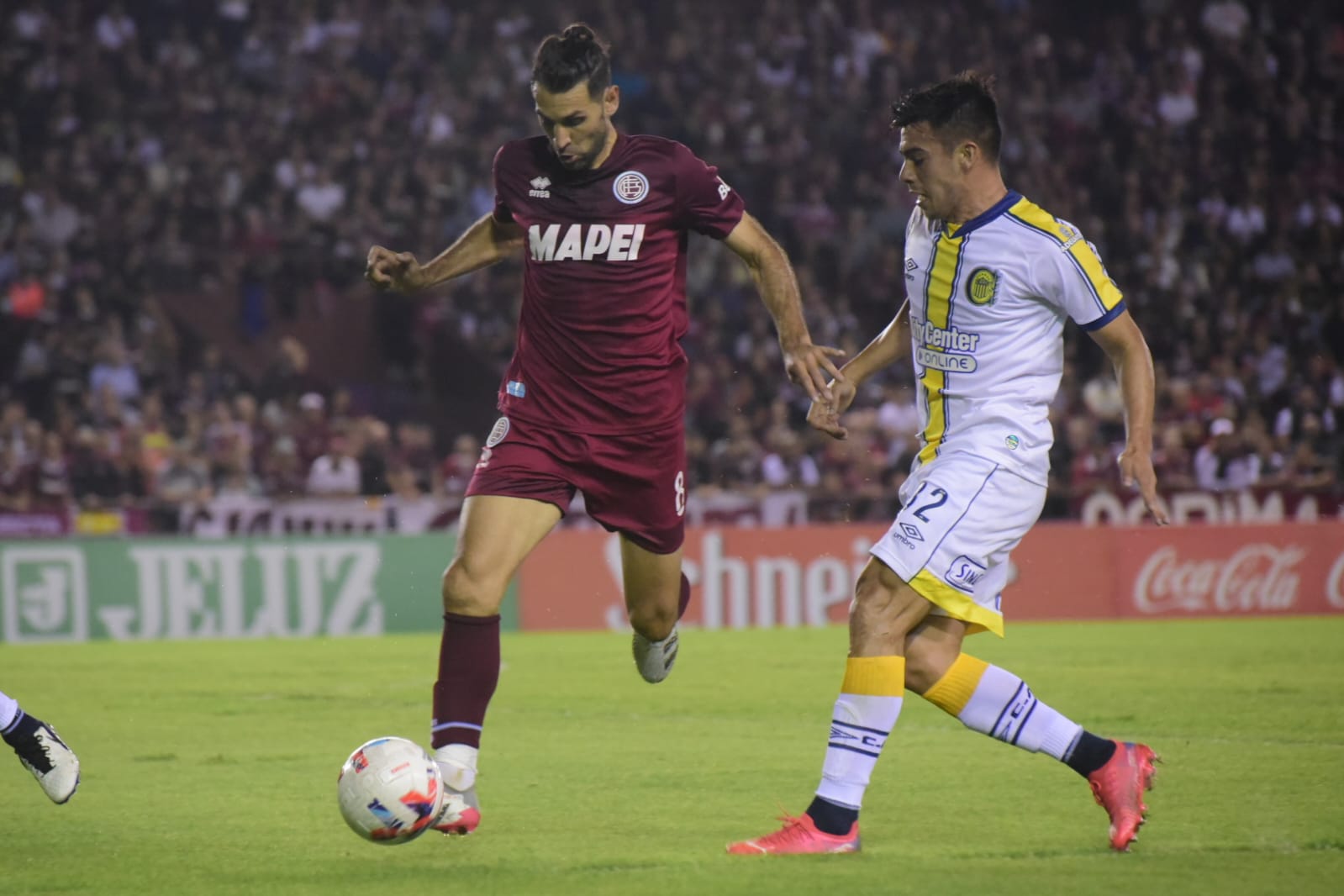 El primer tiempo comenzó muy disputado y trabado en la mitad de la cancha, con Lanús intentando hacerse dueño de la pelota y Rosario Central esperando un poco más atrás para salir de contraataque. Los primeros 25 minutos del partido prácticamente no tuvieron situaciones claras de gol, hasta que a los 28 el Grana abrió el marcador. José Sand levantó la cabeza dentro del área y asistió a José López, que de zurda puso el 1-0.