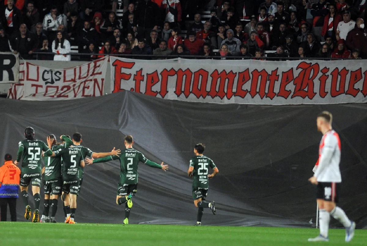 River dominó la primera parte, pero Sarmiento se fue 2-0 arriba al descanso. ¿Cómo se explica? En la eficacia del equipo dirigido por Israel Damonte, tanto en defensa como en ataque. Si bien el Millonario manejó la pelota, el Verde se paró bien atrás y dejó todo por mantener el cero en su arco. Las que tuvo arriba, las metió: primero Mainero a los 31 minutos y después un cabezazo de Andueza en una de las últimas antes de finalizar el PT.