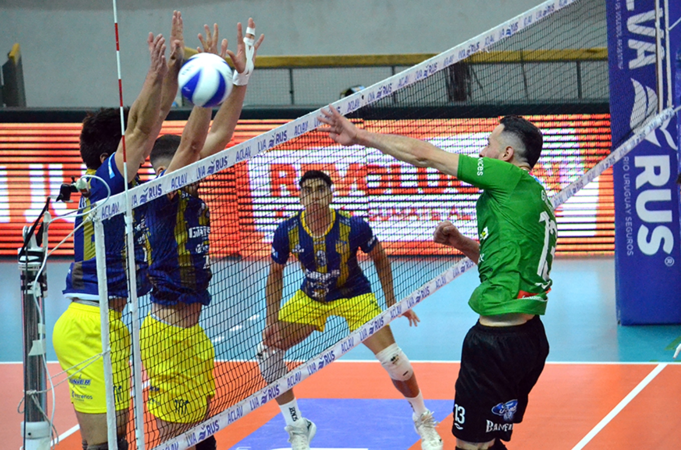 El Auriazul comenzó el partido sólidamente con una ventaja de siete puntos en el primer set construida a partir de una buena actuación grupal. El 25/18 lo hizo llegar con ventaja al segundo set, aunque en ese momento llegó la reacción de Defensores de Banfield.