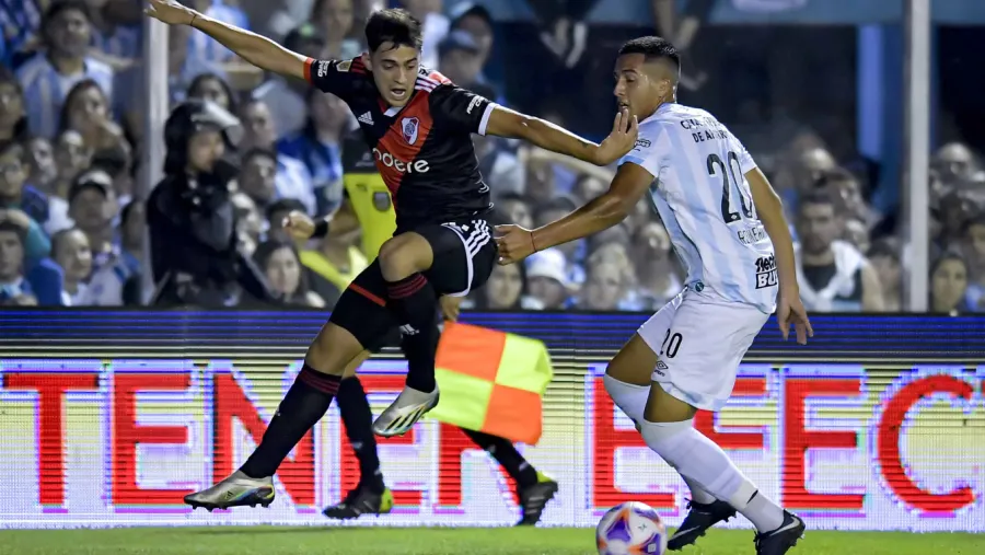 La respuesta de River llegó todavía en el primer tiempo. Una buena jugada grupal derivó en el toque de Miguel Borja desde el centro hacia la derecha para Pablo Solari. Ahí, el atacante desaprovechó la posibilidad de volver a jugar con el colombiano, que estaba sin marca en el área y envió un centro sin destinatario que atravesó toda el área chica.