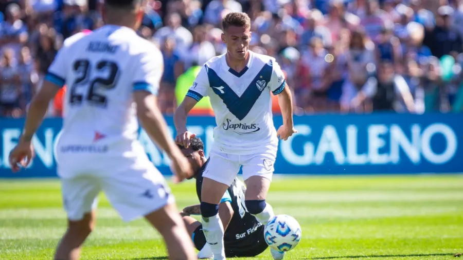 Una buena jugada asociada permitió la siguiente llegada de Vélez. Esta vez la combinación fue por la izquierda, con un pase en profundidad de Pizzini para el avance de Elías Gómez. El lateral superó la marca y envió un centro para la llegada de Thiago Fernández, pero el atacante no consiguió darle dirección a su cabezazo.