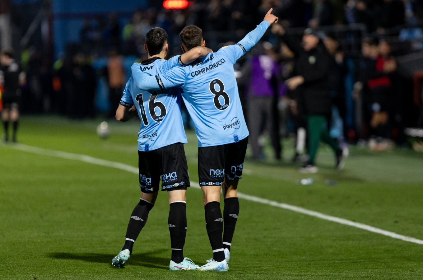 Gabriel Compagnucci (derecha) anotó el primer gol de la victoria de Belgrano.