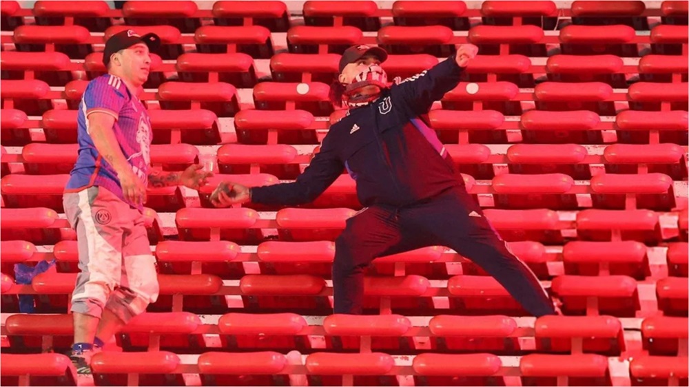El caos comenzó cuando seguidores de la U de Chile, ubicados en la tribuna alta, comenzaron a arrojar proyectiles como palos, botellas y butacas hacia los hinchas de Independiente que se encontraban en la parte baja, lo que desató una feroz respuesta de la barra local.