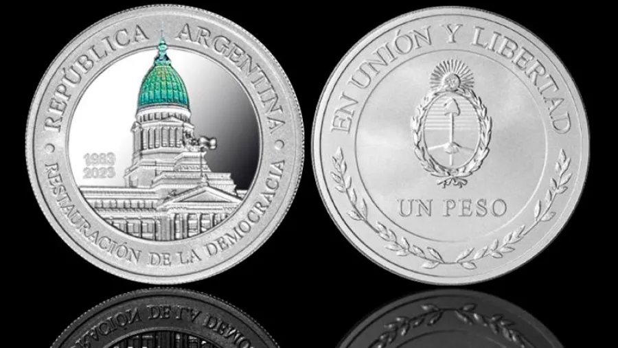 El Banco Central emitió una moneda de plata conmemorativa del cuadragésimo Aniversario de la Restauración de la Democracia 1983-2023.