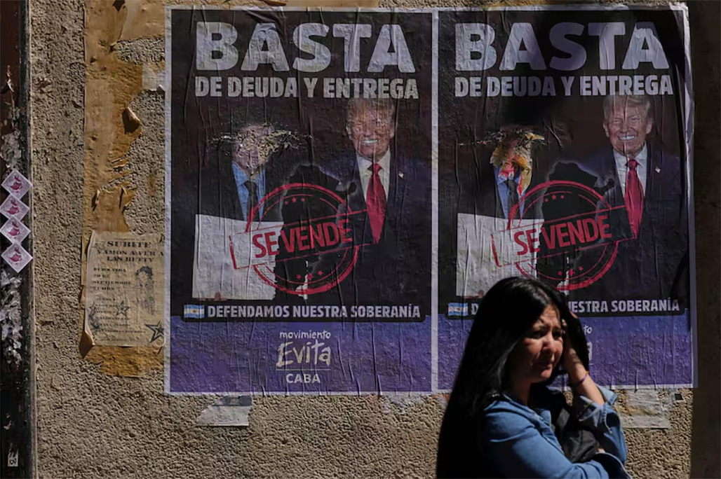 Los afiches de la oposición en contra del auxilio de Trump a Milei comenzaron a poblar las paredes de Buenos Aires.