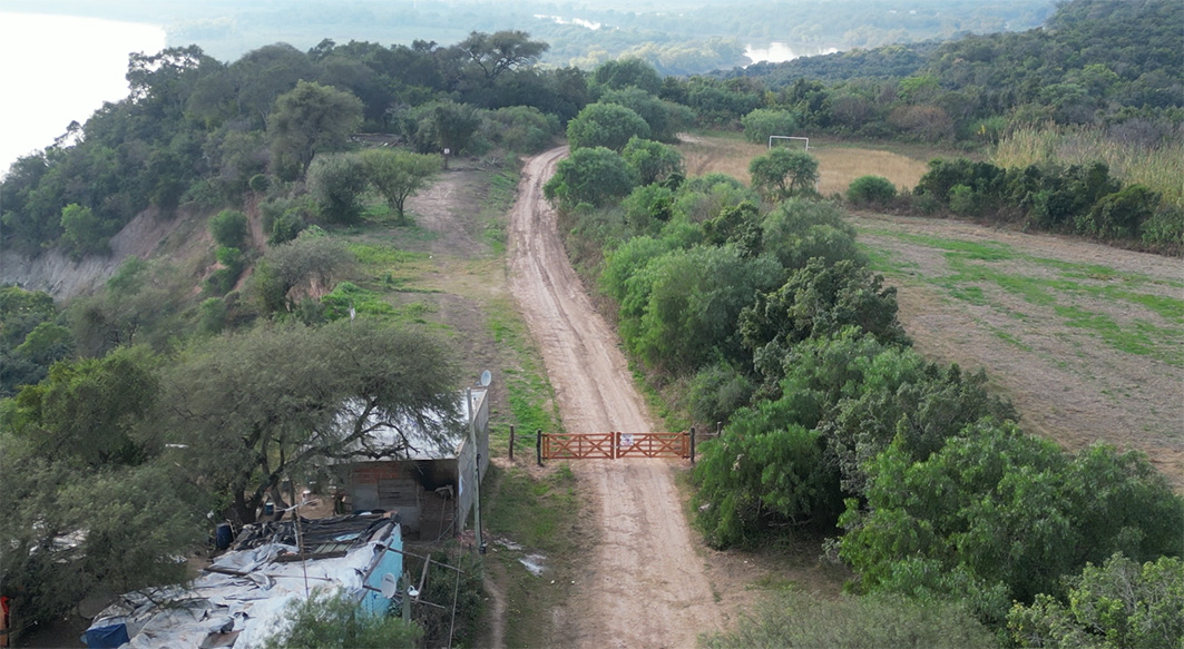 Desalojos, amenazas, instalación de cámaras de vigilancia con altavoces, denuncias cruzadas, un conflicto judicial y acuerdos privados entre bambalinas, son algunos de los elementos de un complejo entramado que involucra el enfrentamiento entre un grupo de familias y desarrolladores inmobiliarios que tiene como escenario de disputa un sector del borde costero de Paraná. Se trata de un área ubicada en calle Pedro Londero al final, pasando el espacio de retiro “Centro Mariápolis”, al norte de la capital entrerriana. Ese lugar en algún momento cobró relevancia institucional, porque allí la Municipalidad de Paraná iba a acondicionar un paseo público. Fue durante la primera gestión de Julio Rodolfo Solanas (PJ), que entre 1991 y 1995 lo tuvo como intendente. En el último año de este período, se lanzó un proyecto denominado “Parque Costero Combate Vuelta de Obligado” que alcanzó un estatus de creación mediante la ordenanza Nº 7.735. Para esto se diagramaron algunas obras: se realizaron miradores y escalinatas cerca de la barranca; se instalaron algunos mobiliarios urbanos y la réplica de una cruz de ñandubay, como la que se encuentra en el sitio histórico en San Pedro, provincia de Buenos Aires, donde en 1845 se libró la mentada batalla por la soberanía. En el parque también se plantaron unos espigados tótems de madera que, con los años, fueron tapados por los yuyos y luego trasladados a otra plaza de la ciudad sobre Puerto Sánchez.