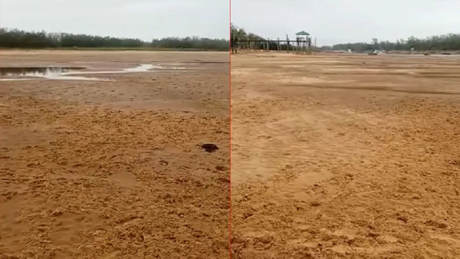 En un video se puede ver que la sequía es prácticamente total, con la excepción de algunos restos de agua que se observan en el lugar.