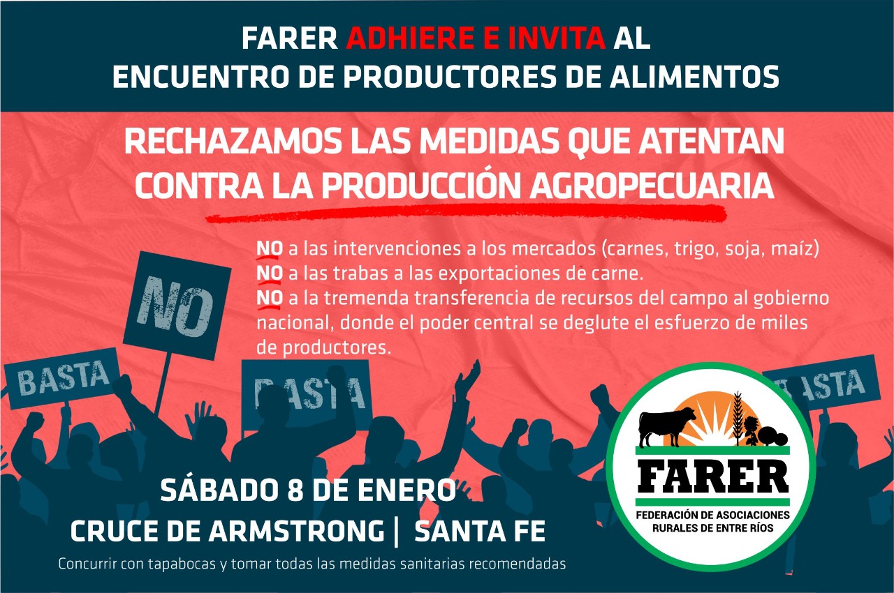 La Federación de Asociaciones Rurales de Entre Ríos (FARER) participará el sábado 8 de enero del encuentro de productores de alimentos que tendrá lugar en el cruce de Armstrong, provincia de Santa Fe.