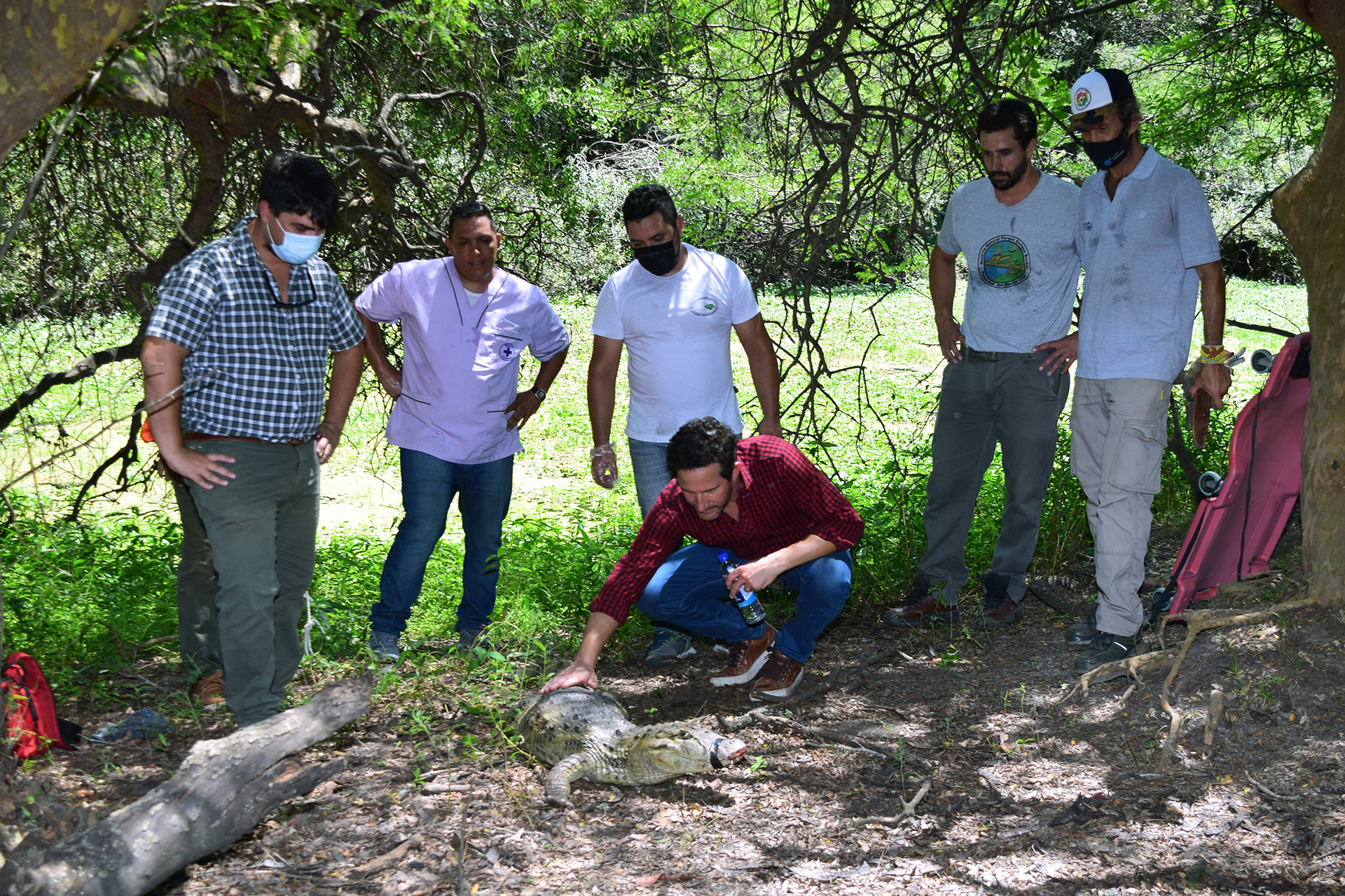 La liberación contó con el trabajo coordinado de personal técnico del Proyecto Yacaré, el Médico Veterinario de la Dirección de Recursos Naturales, el Guardafauna Honorario de la Reserva Provincial y el Director de Áreas Protegidas de la Secretaria de Ambiente de la provincia, Alfredo Berduc.