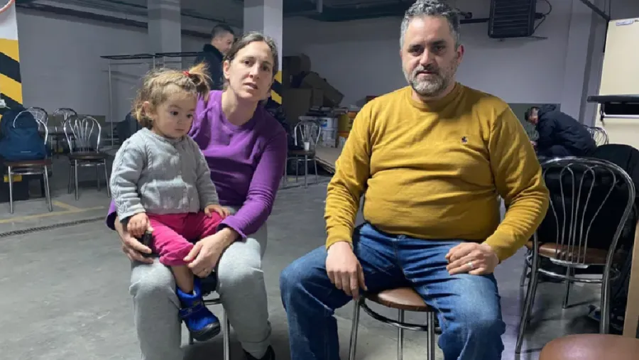 “Ayer a la mañana en principio nos levantamos para ir al cole, pero desde que comenzó a sonar la sirena de alarma, en los chats de la escuela nos dijeron que no había que ir y al ver degenerar de este modo la situación, algo que nunca nos esperamos, nos enteramos de los convoyes de la embajada española y aquí estamos”, contó Sara, oriunda de Valencia, como su marido. Como en su casa no se sentían seguros, decidieron pasar la noche en el hotel, que tiene búnker, a la espera de la evacuación, que finalmente ocurrió a las siete de la mañana, en una ventana de respiro entre ataque y ataque.