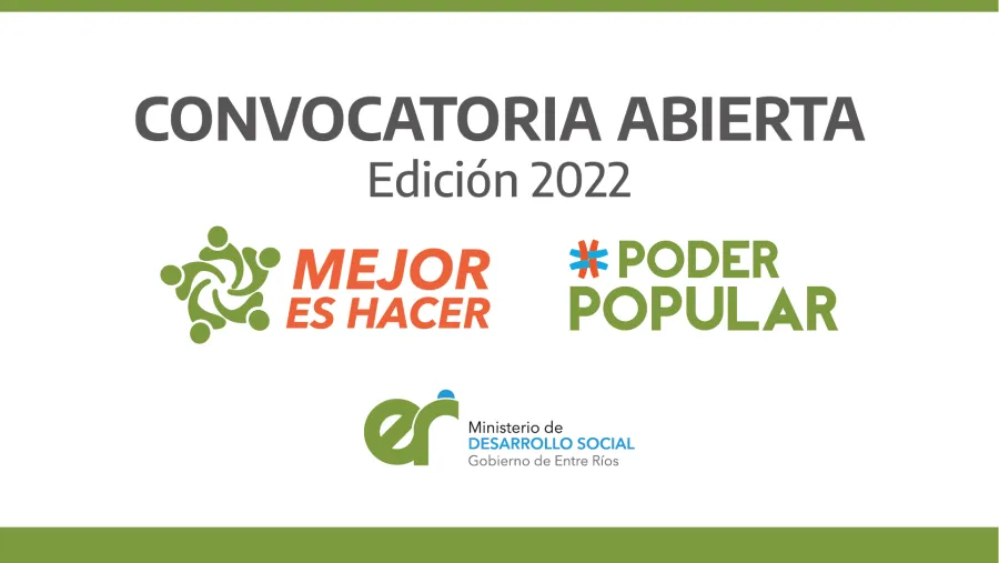 Hasta el 18 de abril está abierta la convocatoria para presentar proyectos en los programas Mejor es Hacer y Poder Popular de las subsecretarías de Políticas Comunitarias y Territoriales, y de Fortalecimiento de las Organizaciones Sociales del Ministerio de Desarrollo Social.