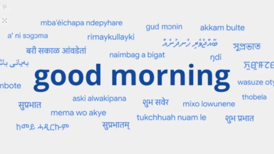 El texto "good morning" (buenos días) rodeado por las traducciones de las 24 lenguas que se suman al traductor, entre las que están el guaraní y aymara.
