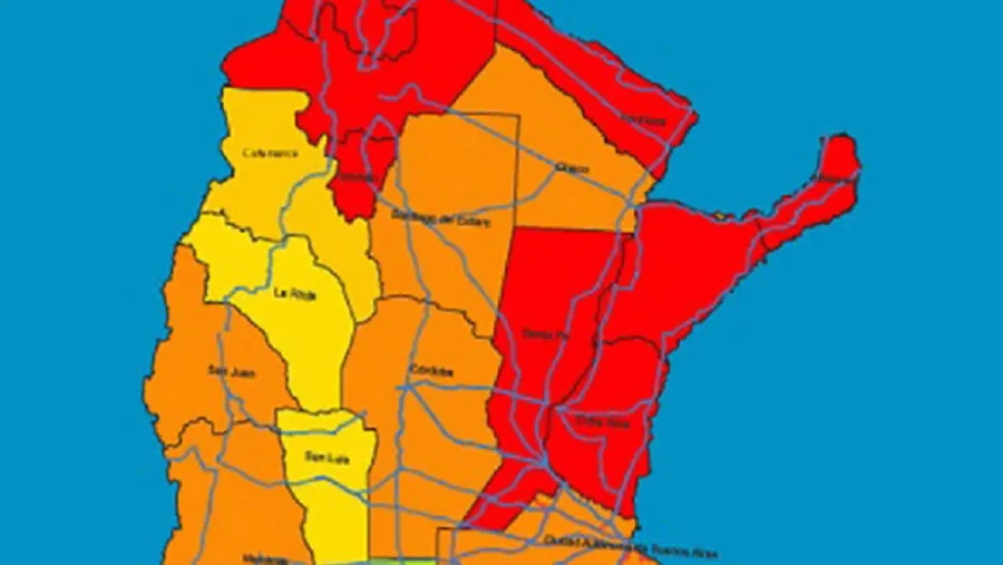Las otras seis provincias en rojo son Jujuy, Salta, Formosa, Tucumán, Misiones y Corrientes.