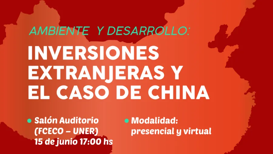 Habrá un conversatorio sobre “Ambiente y Desarrollo: inversiones extranjeras y el caso Chino”. En la charla se propone dar a conocer los impactos ambientales y sociales de los proyectos que se desarrollan en la región y en Argentina con financiamiento chino.