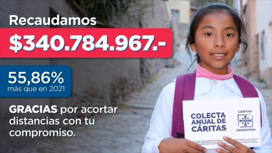 Cáritas Argentina informó que el total de lo recaudado en su colecta anual realizada los días 11 y 12 de junio de 2021 bajo el lema “Tu compromiso acorta distancias”, asciende a $340.784.996,94. El monto representa un 55,86% de incremento respecto del año pasado y resulta significativo en el contexto de la crisis socioeconómica que atraviesa la Argentina.