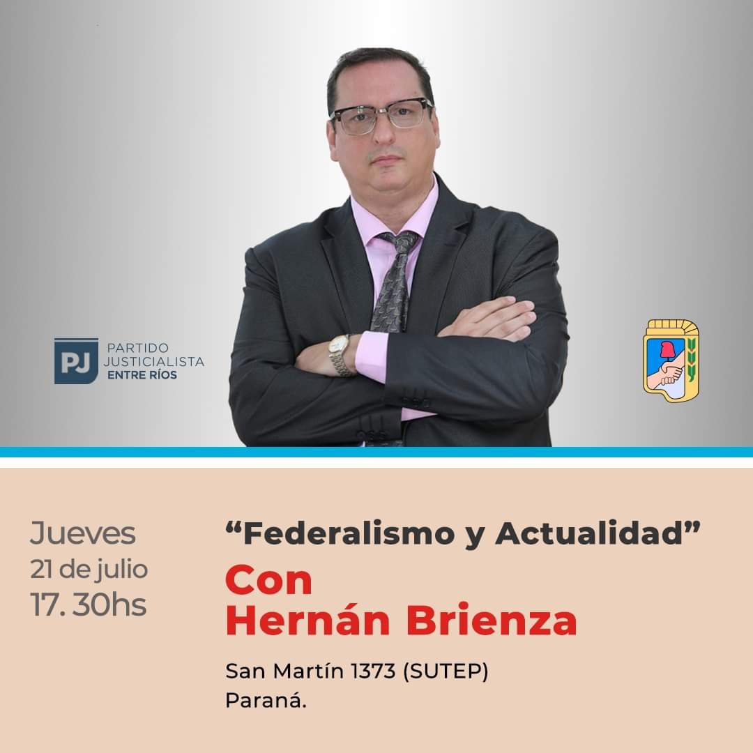 El periodista, escritor, politólogo, ensayista e historiador argentino, Hernán Brienza estará este jueves en Paraná, en el marco de una charla organizada por el Partido Justicialista de Entre Ríos, bajo el título “Federalismo y Actualidad”.