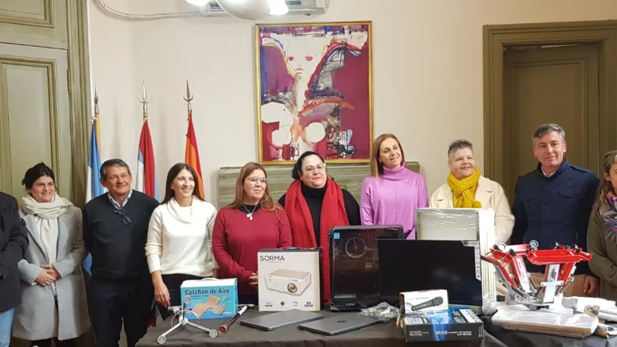 En el acto se presentó el equipamiento informático adquirido (proyector, pantalla, computadora de escritorio, notebook) así como los elementos para el cuidado de adultos mayores como bastones, andador, entre otros.