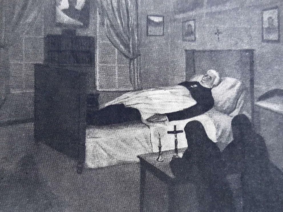 Colocaron un crucifijo sobre su pecho, otro en una mesa entre dos velas, mientras dos hermanas de la caridad rezaban.