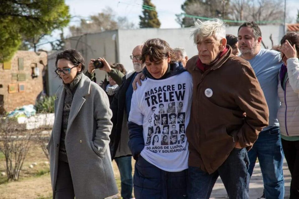 Mientras la visita sigue, se escuchan algunos cantos, alguno que dice que son 30 mil, otro que sigue queriendo vengar a los muertos de Trelew. Ninguno enciende la mecha de la voz colectiva aunque conmueve ver a un grupo de hombres que supera largos los 70 cantar por sus banderas, sus comandos. Estuvieron Taty Almeida, Horacio Pietragalla, Martín Mena y Tristán Bauer.