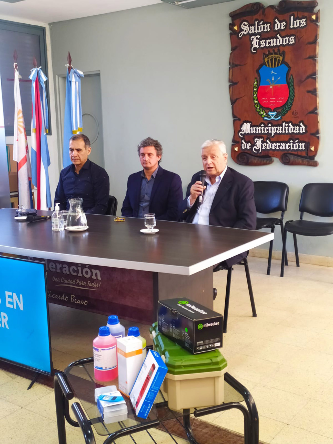 En este contexto, la Municipalidad recibió un disco de Secchi, el cual mide la turbidez del agua, un oxímetro para medir el oxígeno disuelto en el agua, un PHmetro el cual mide el ph en el agua, un conductímetro para medir la conductividad del agua y soluciones calibradoras.